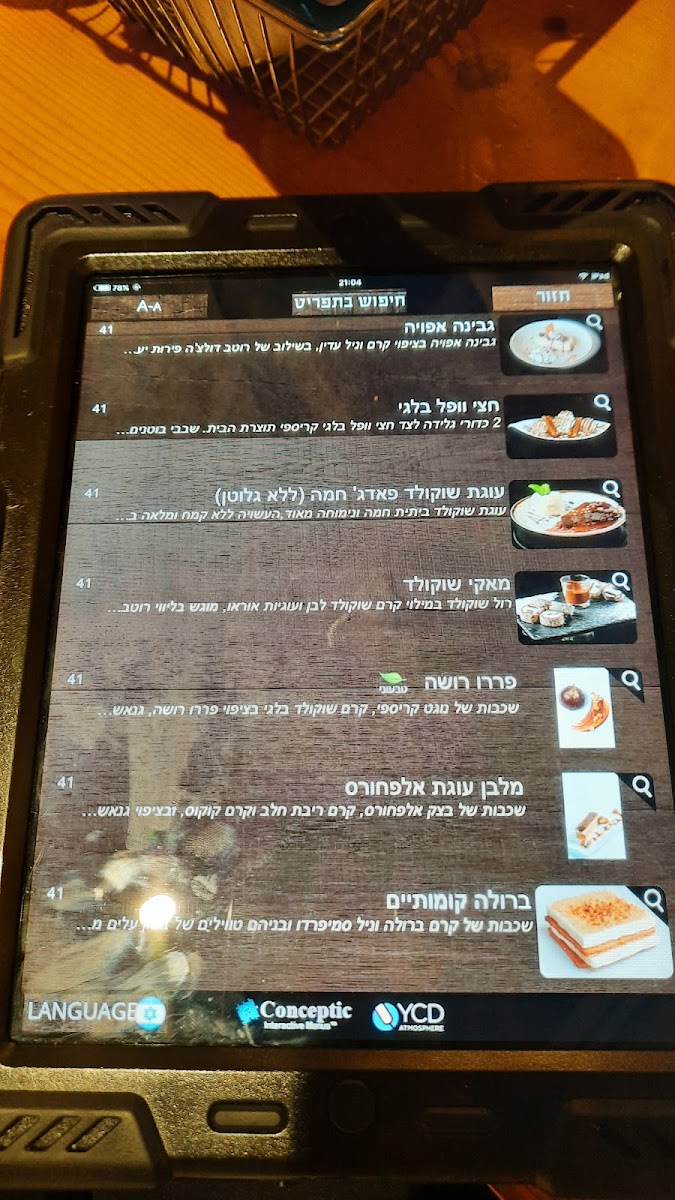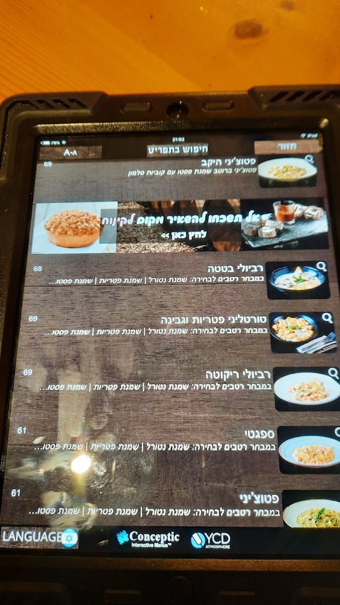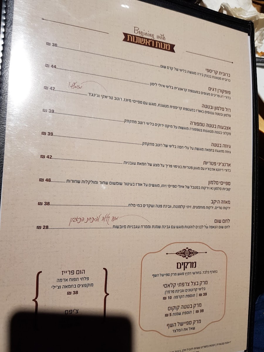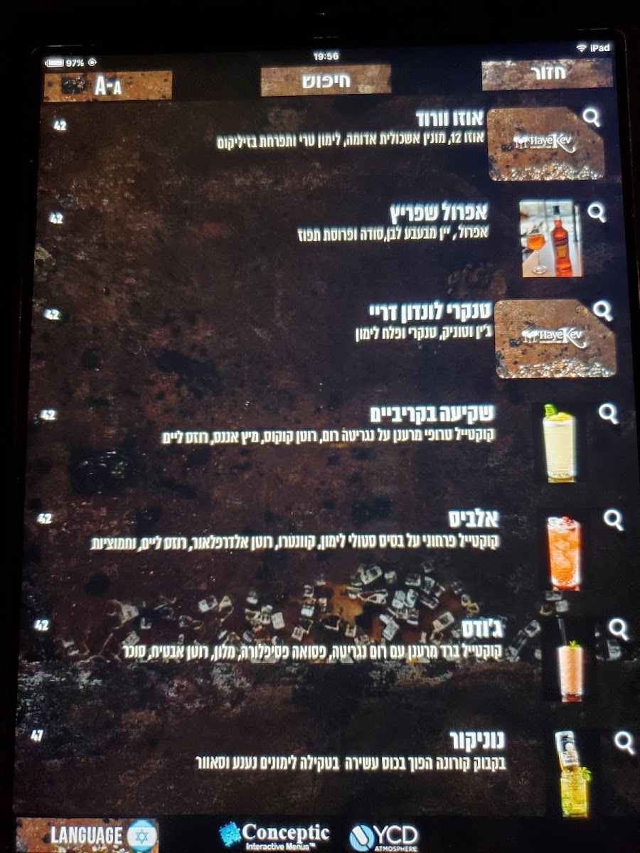 HaYekev Menu